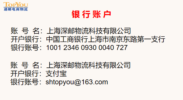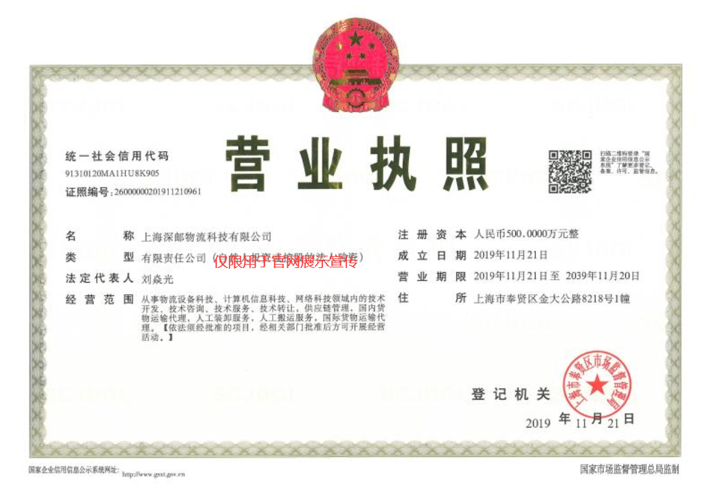 上海深邮物流科技有限公司,成立于2019年11月,是深圳市通邮物流科技(集团)有限公司全资子公司,位于上海市奉贤区金大公路8218号1幢,上海市及周边全境揽收。