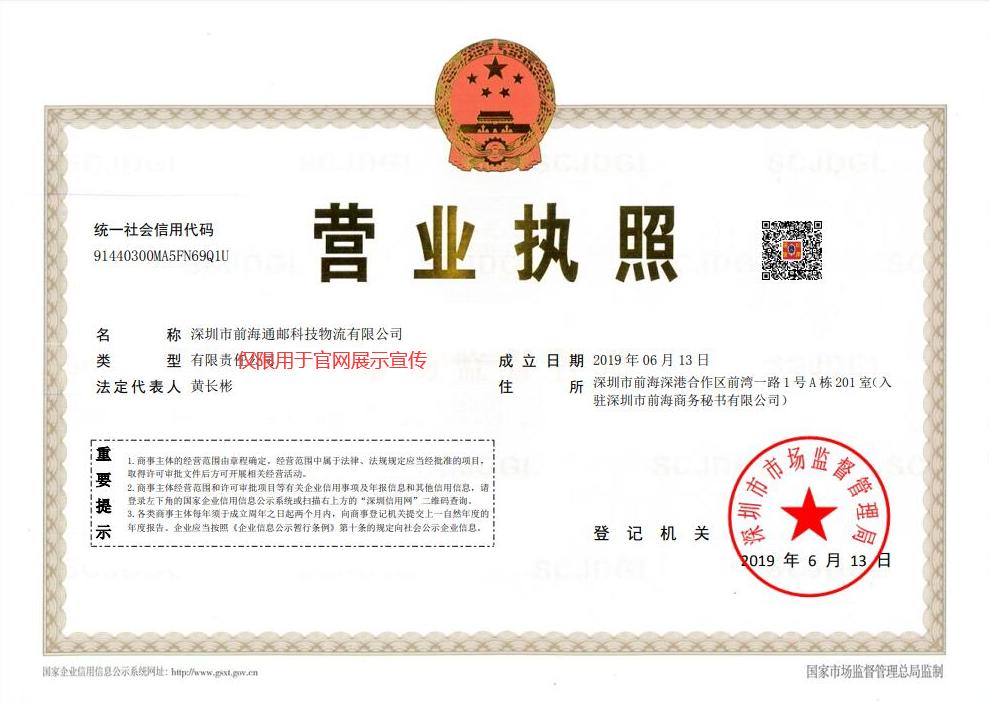 深圳市前海通邮科技物流有限公司,成立于2019年6月,是深圳市通邮物流科技(集团)有限公司全资子公司,位于深圳市前海深港合作区前湾一路1号A栋201室,深圳市全境及周边揽收。
